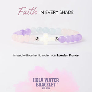 Crafted with morganite beads in a pastel ombre pattern, this bracelet is the ultimate symbol of faith with a fun pop of color! Each bracelet features our signature cross infused with authentic holy water sourced directly from Lourdes, France.