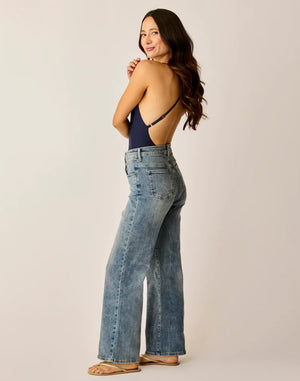 Our signature Victoria Twilight Stretch Denim, zipper fly with button closure and a longer length inseam provide backup to an otherwise showstopper. A high rise that is fitted at the waist and hip and relaxes into a slouchy straight leg. If you like the comfort denim feel of the Carson Jean but want more of a fitted waist and relaxed leg, the Audrey is your jean.
