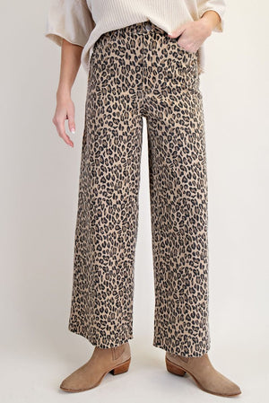 Embrace effortless style with these animal print washed twill pants, featuring a relaxed wide-leg silhouette that moves beautifully. The raw-cut hem adds contemporary edge, while functional front and back pockets keep essentials close. Secured with a classic button and zip fly, these versatile bottoms transition seamlessly from casual to refined occasions.