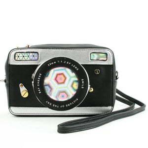 Crafted from quality vinyl with a fun, unique design, this Camera Crossbody Purse is as stylish as it is practical. It features a detachable shoulder strap that adjusts up to 26” for the perfect fit. Keep your essentials safe with a secure top zippered closure, plus an extra exterior zippered pocket for quick access. The fabric-lined interior adds a touch of comfort and protection. Compact yet roomy, it measures approximately 5” L x 8.5” W x 2.5” H—ideal for your on-the-go adventures!