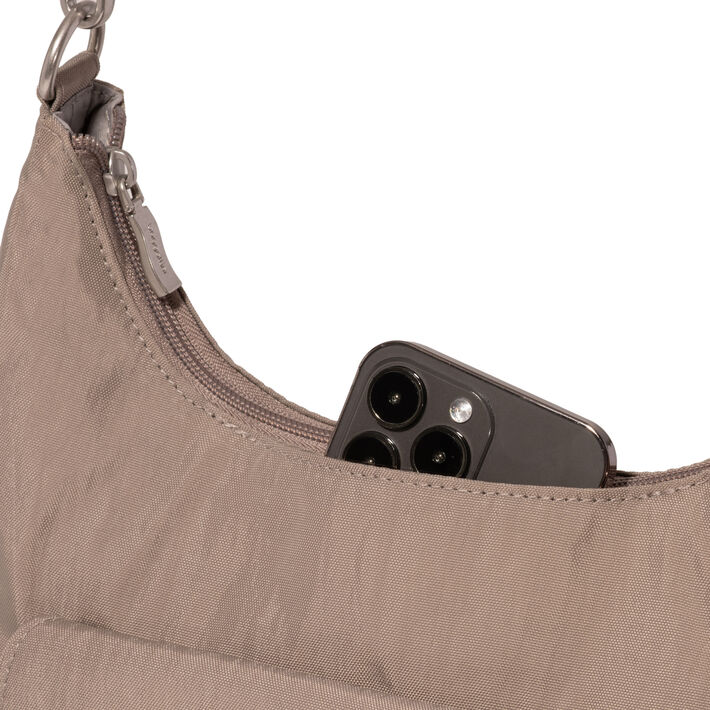Made with convertibility in mind, this style can be worn as both a crossbody or a half moon shoulder bag. A sleek flip lock closure keeps the RFID-protected front wallet secure, and the adjustable crossbody strap helps you achieve the perfect fit.
