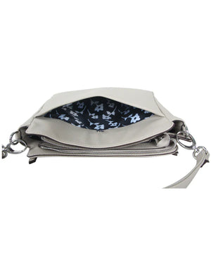 • Interior pockets: center zip divider, 1 zip, slip (2 front, 1 back)
