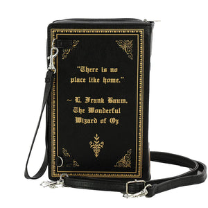 Step into the wonder of Oz with The Wizard of Oz Book Clutch Bag! Crafted from quality vinyl and featuring a unique artwork by Tina Tarnoff, this fun clutch offers a 21.5" shoulder strap and a 6" wristlet drop for versatile wear. It has a secure zippered closure and a fabric-lined interior with dual compartments and a zippered pocket to keep your essentials organized. Measuring approximately 6" L x 2.5" W x 9.5" H, it’s the perfect playful accessory to carry a bit of magic wherever you go.
