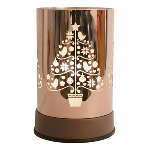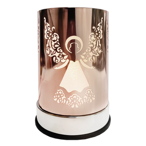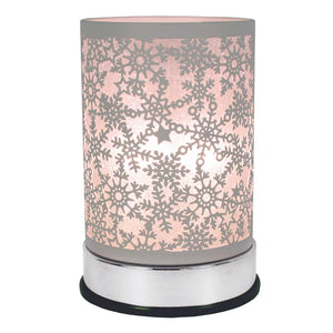 Scentchip Warmers are a metal electric powered base unit with a lightbulb centered under a glass cup that holds scented wax melts. Interchangeable metal shades with different designs slide over the base unit to cast a shimmery glow through a chic, sparkling modern design. The warmers are touch activated to turn on and off and include three brightness settings.