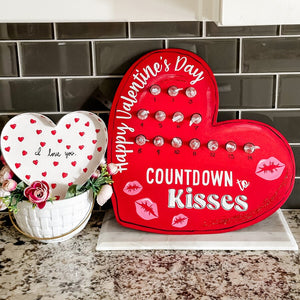 Display your affection with Count Down To Kisses, a charming piece that celebrates love and connection. This versatile decoration works beautifully as a garden stake, wall-mounted hang, or easel display—choose the setup that fits your space. Perfect for anniversaries, Valentine's Day, or simply reminding someone special how much they mean to you. A thoughtful way to count down moments of togetherness and share daily expressions of care.