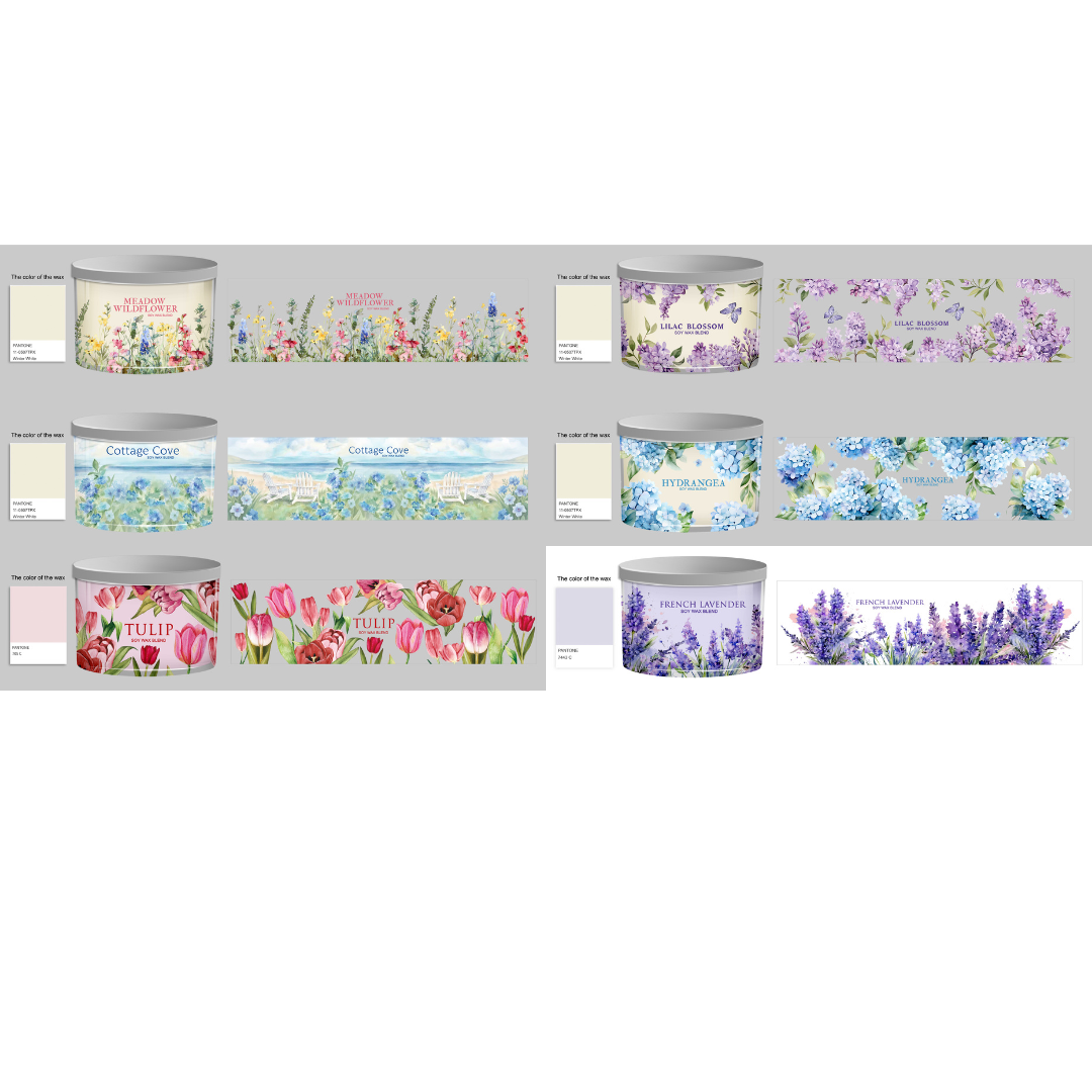 Escape to your own secret garden with six enchanting scents to choose from! Cottage Cove whisks you away to a cozy seaside retreat, while French Lavender brings timeless calm and elegance. Tulip offers fresh, delicate florals, Lilac Blossom captures spring's sweetest moments, Meadow Wildflower bursts with untamed botanical joy, and Hydrangea wraps you in lush, romantic blooms. Each 14 oz three-wick candle is made with premium soy wax blend and USA essential oils—choose your mood and let the magic begin!