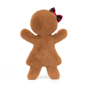 Jolly Gingerbread Ruby can't wait for Christmas! She's all glammed up in a stitched icing dress and her cosy fur is baked to perfection. With embroidered lashes and a tartan hair bow, and biscuit arms aloft, Ruby shines!