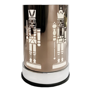 Scentchip Warmers are a metal electric powered base unit with a lightbulb centered under a glass cup that holds scented wax melts. Interchangeable metal shades with different designs slide over the base unit to cast a shimmery glow through a chic, sparkling modern design. The warmers are touch activated to turn on and off and include three brightness settings.