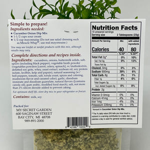 Add 1 Tablespoon of hot water to Cucumber Onion Dip Mix. Stir with a fork; let set 5 minutes to rehydrate cucumbers. Add softened cream cheese. Mix well (a fork works great to mix with). Shape into a ball or log. Cover with plastic wrap. Chill overnight or for minimum of 4 hours. Remove plastic wrap and roll in finely crushed crackers, if desired. Serve with crackers or vegetables.