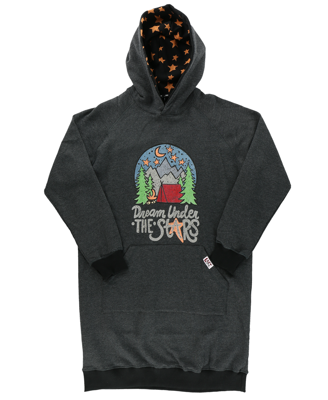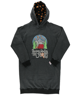 Our Lazy One Dream Under the Stars Sleep Hoodie is perfect for those summer nights sitting by the campfire. It is even better for those cold nights sitting by the fireplace. Our Sleep Hoodies are longer than your average hoodie, making them perfect for snuggling on the couch on a cold day. They also feature thumb holes and who doesn't love those!! Made with 80% cotton and 20% polyester giving you the right amount of comfort and warmth.