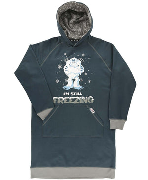 Are you cold all year long? Well relax around the house with warm and comfort with our Lazy One I'm Still Freezing Yeti Sleep hoodie. This sleep hoodie features a cute and fun yeti design that is perfect for those colder days. Our Sleep Hoodies are longer than your average hoodie, making them perfect for snuggling on the couch on a cold day reading your favorite novel. They also feature thumb holes and who doesn't love those!! Made with 80% cotton and 20% polyester giving you the right amount of comfort and warmth.