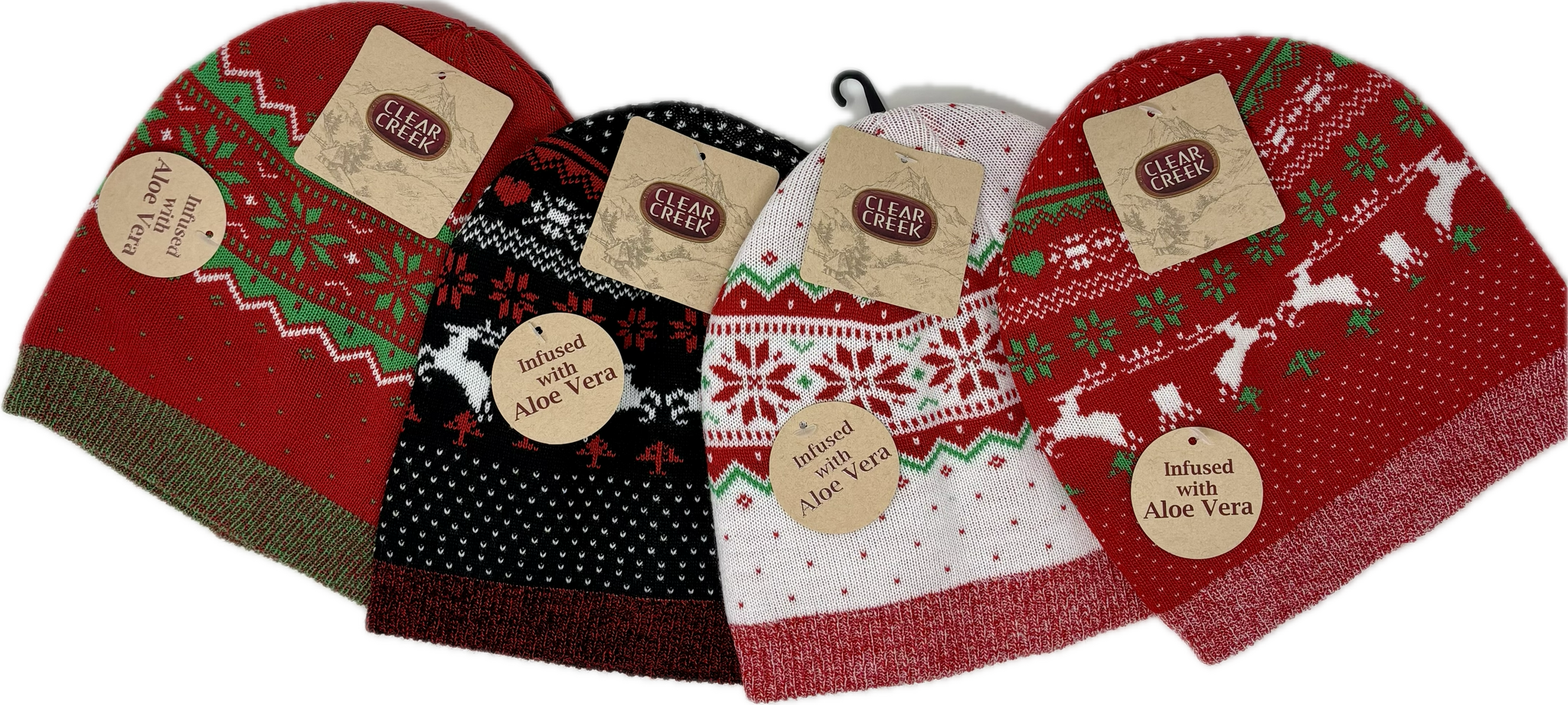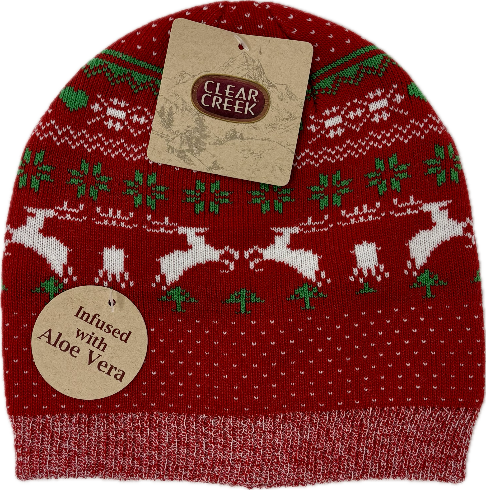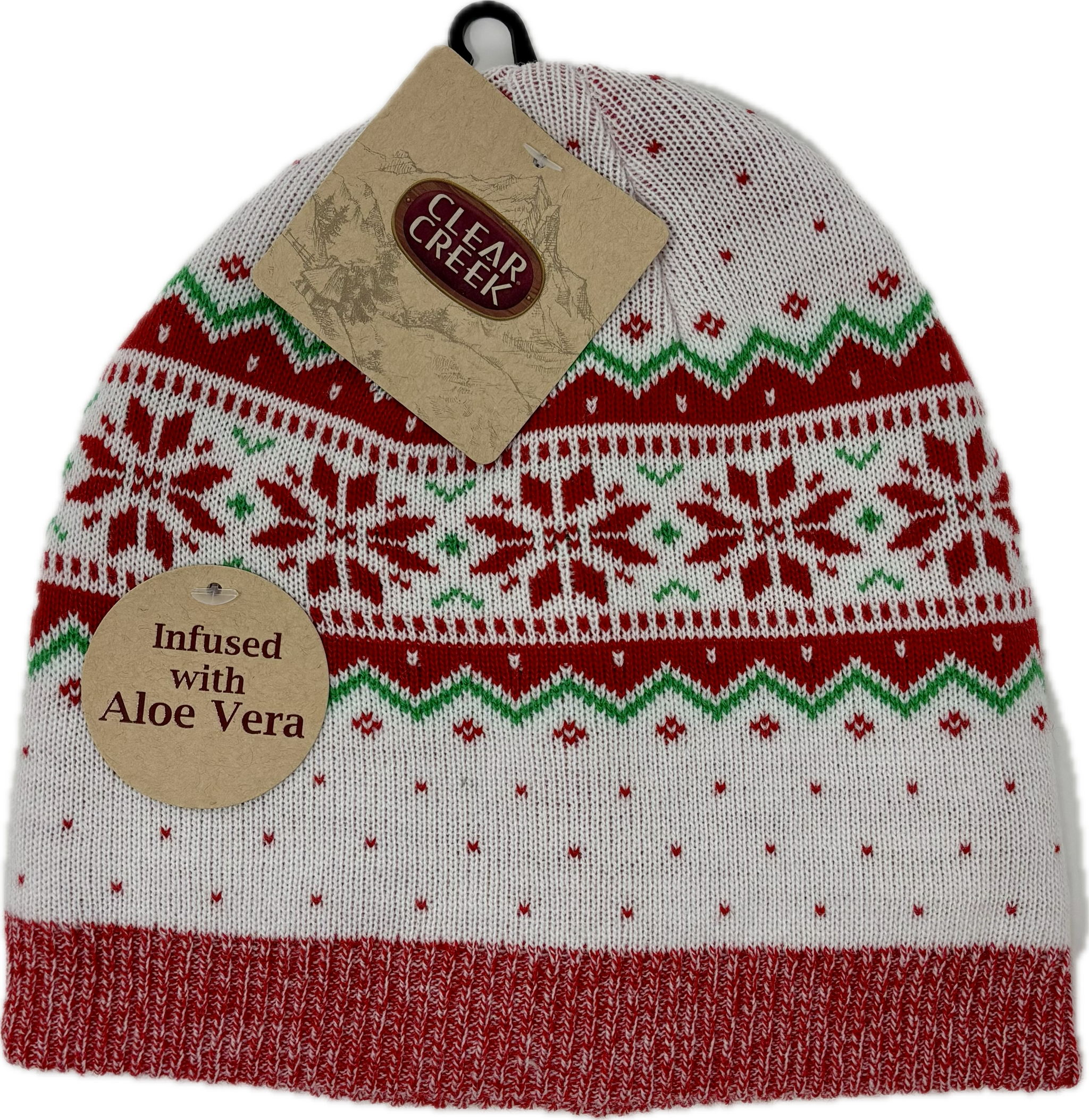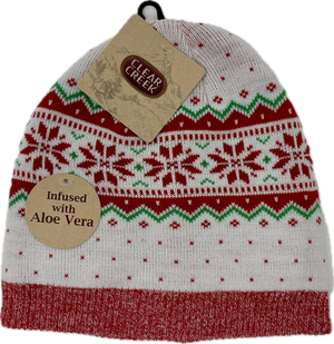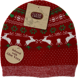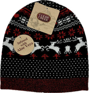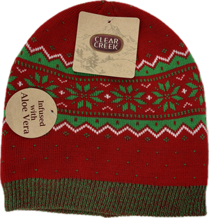 Stay cozy and merry with this festive Clear Creek knit hat featuring a cheerful Christmas pattern that spreads holiday cheer wherever you go. The best part? The aloe-infused lining keeps your skin feeling soft and soothed while you brave the cold. Perfect for winter adventures, holiday gatherings, or just adding a touch of seasonal joy to your everyday look. Comfort meets festive style in one delightful package.