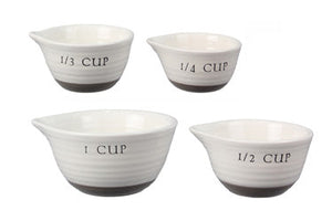 This 4-piece ceramic measuring cup set features batter bowl shapes and comes with a spout for easy pouring. With dual-tone coloring and clear measurements, this set is perfect for the chef or foodie in your life.
