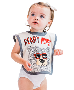 Your little one might be making a huge mess but at least they will be cool doing it! How cool you may be asking yourself? "Beary" Cool. Our Beary Hungry Infant bib has a large size of 11" x 15" . Our infant bibs help catch most of the things that are missed by your little one. 100% cotton for a soft feel and an easy pull on or off design for full coverage! Making your baby look as cool as can be no matter how messy it gets.