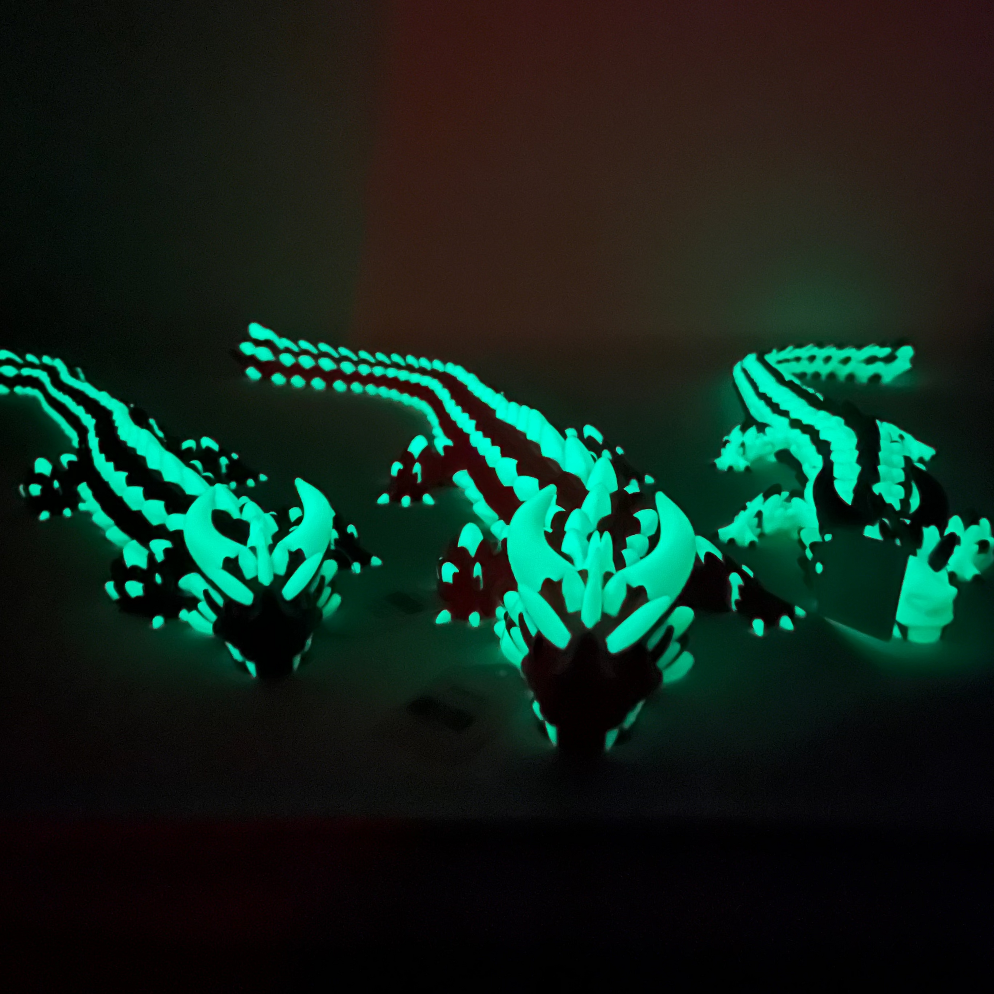 Meet your new favorite desk companion! This Glow in the Dark Flexi-Dragon is expertly crafted using 3D printing technology, bringing imaginative design to life with precision detail. Watch it come alive in low light with its enchanting glow-in-the-dark finish. The flexible joints allow for endless posing possibilities, making it perfect for creative play, display, or as a unique gift for dragon enthusiasts of all ages. A modern twist on classic collectibles that sparks joy and imagination.
