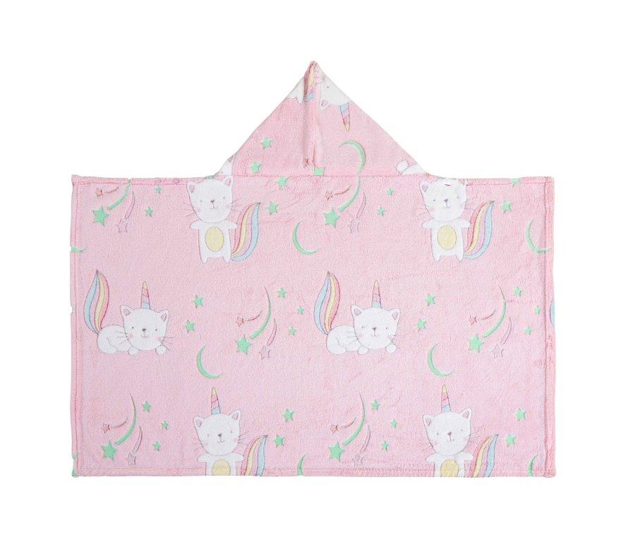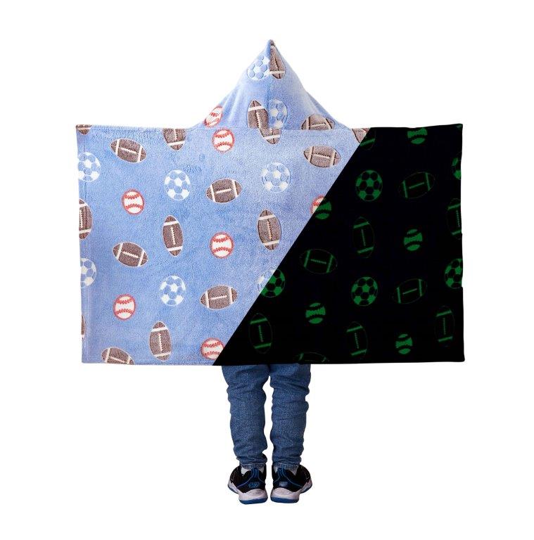 Wrap your little one in cozy magic with this glow-in-the-dark wearable hooded throw! Measuring 50 inches by 30 inches, it's the perfect size for kids to snuggle under while reading, watching movies, or just lounging around. The enchanting glow-in-the-dark feature transforms bedtime into an adventure, creating a soft, ambient glow that sparks imagination. Soft, comfortable fabric keeps them warm and toasty, while the attached hood adds extra coziness. Perfect for sleepovers, camping trips, or turning any ordinary evening into something wonderfully spooky and fun!