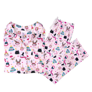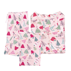 This is the cutest PJ set to wear for Christmas morning. The top is button up front. Pants have a drawstring waist. Fashion by Mirabeau.