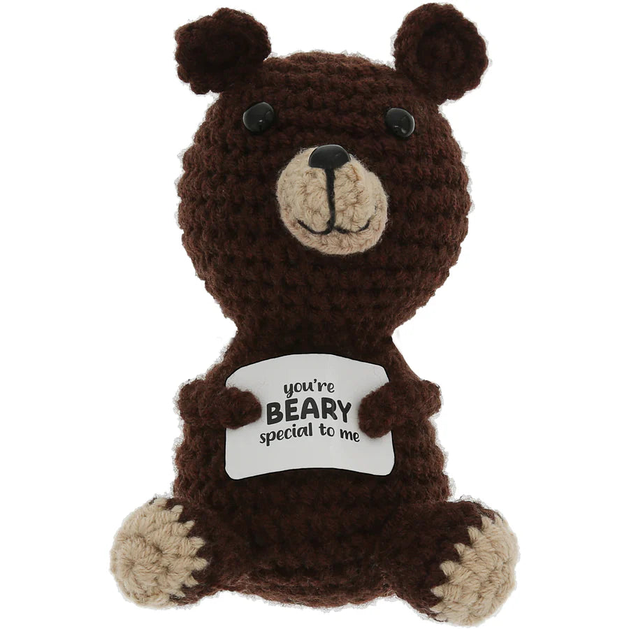PREMIUM QUALITY: Handcrafted from high-quality materials including acrylic yarn, soft polyester filling, and plastic bead eyes, this crochet figure is both durable and delightfully soft. Each one is carefully stitched for a textured, handmade look that brings extra warmth and personality to your gift. The figures sit on a flat surface and includes a sturdy sentiment card.
