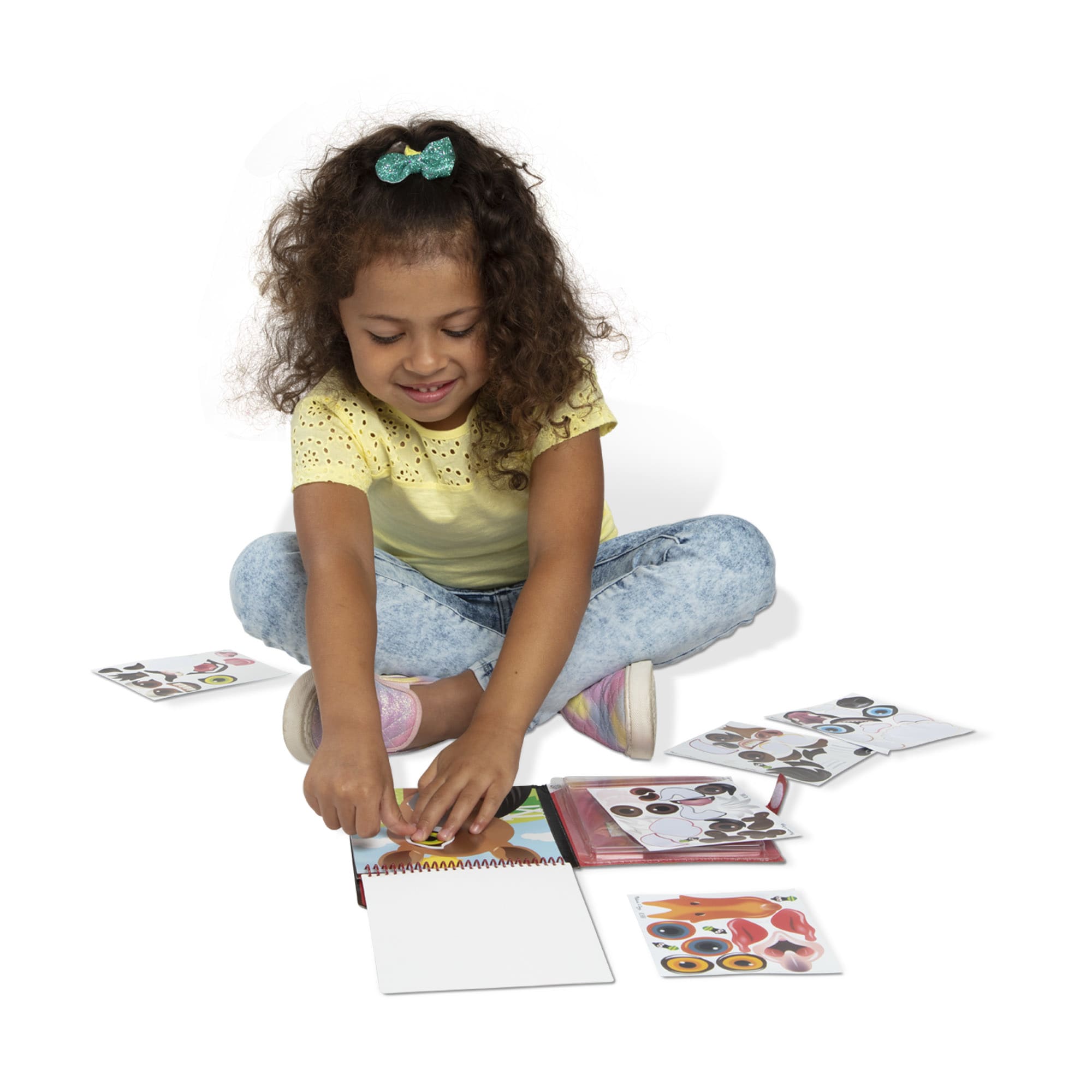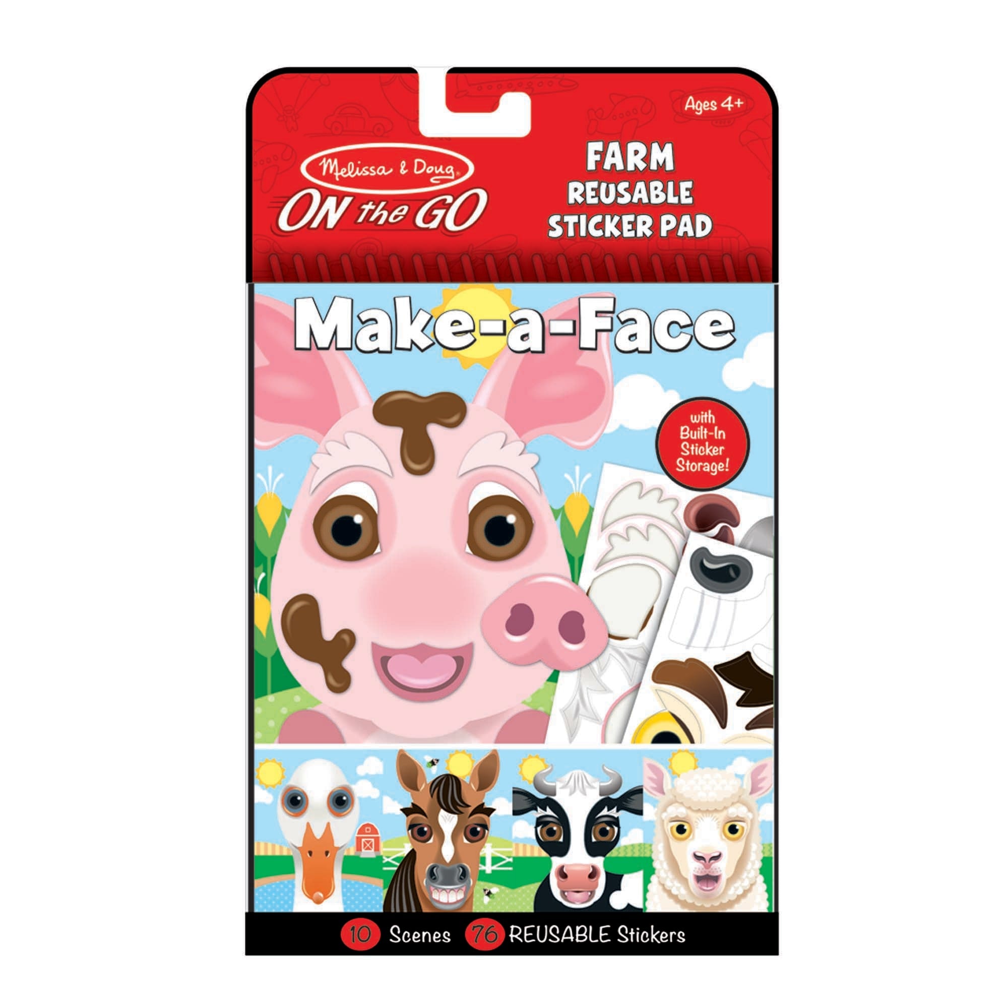 Take reusable sticker fun on the go! Fill 10 full-color glossy scenes with 76 peel and press cling-style stickers to make fun or funny faces, then remove the stickers and make more faces. The handy, compact, spiral-bound pad includes built-in sticker storage, making this the perfect travel activity for kids three and older.